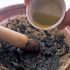 つぶしたニンニクに塩と卵黄を加えて混ぜ、そこにオリーブオイルを加えてかき混ぜて作るソースです。マヨネーズに非常に似ています。肉料理のソースとしても使われますし、野菜料理のソースにしてもぴったりです。