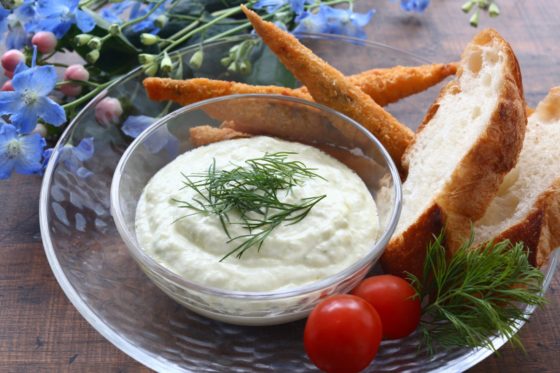 ヨーグルトに塩やニンニク、オリーブオイルなどを加えて作るギリシャのソースです。爽やかな酸味が特徴で、パンに付けて食べたり、肉の串焼きに付けて食べたりもします。