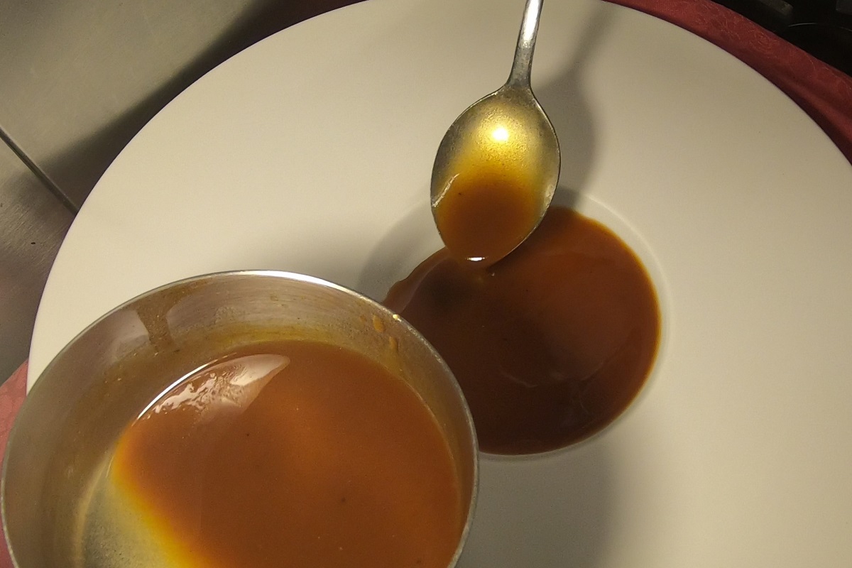 グラス・ド・ヴィヤンド(肉汁を煮詰めたもの)を加える。