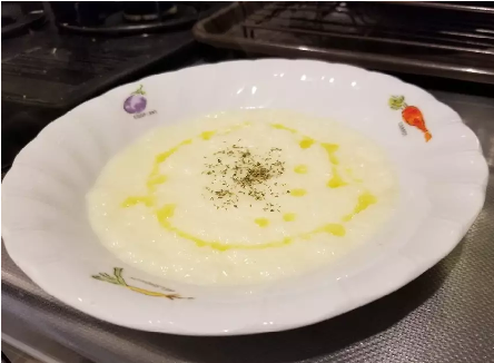 ヴルーテとは、「ビロードのような」という意味で、牛乳でなめらかにのばして卵黄や生クリームでつないだポタージュスープのこと。